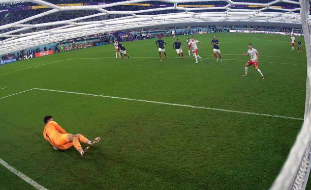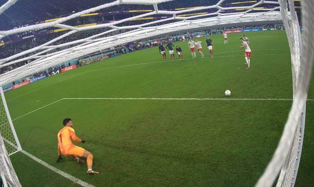 比赛进行到最后1分钟,法国中卫于帕梅卡诺手球犯规,这本该是让他挽回尊严的一份礼物,但莱万还是搞砸了,只见他助跑、假动作、停顿,打算用节奏骗得洛里斯失去重心,但莱万射出的皮球绵软无力,被洛里斯轻松没收。不过,就像是观众不忍心看到艺术家在告别舞台演出时出现失误一样,裁判给了莱万第二次机会。由于莱万的慢动作式的主罚方式,在他射门的一刹那,洛里斯两只脚都离开了门线,法国队也有至少四名其他球员提前进入了禁区,重罚理所应当。